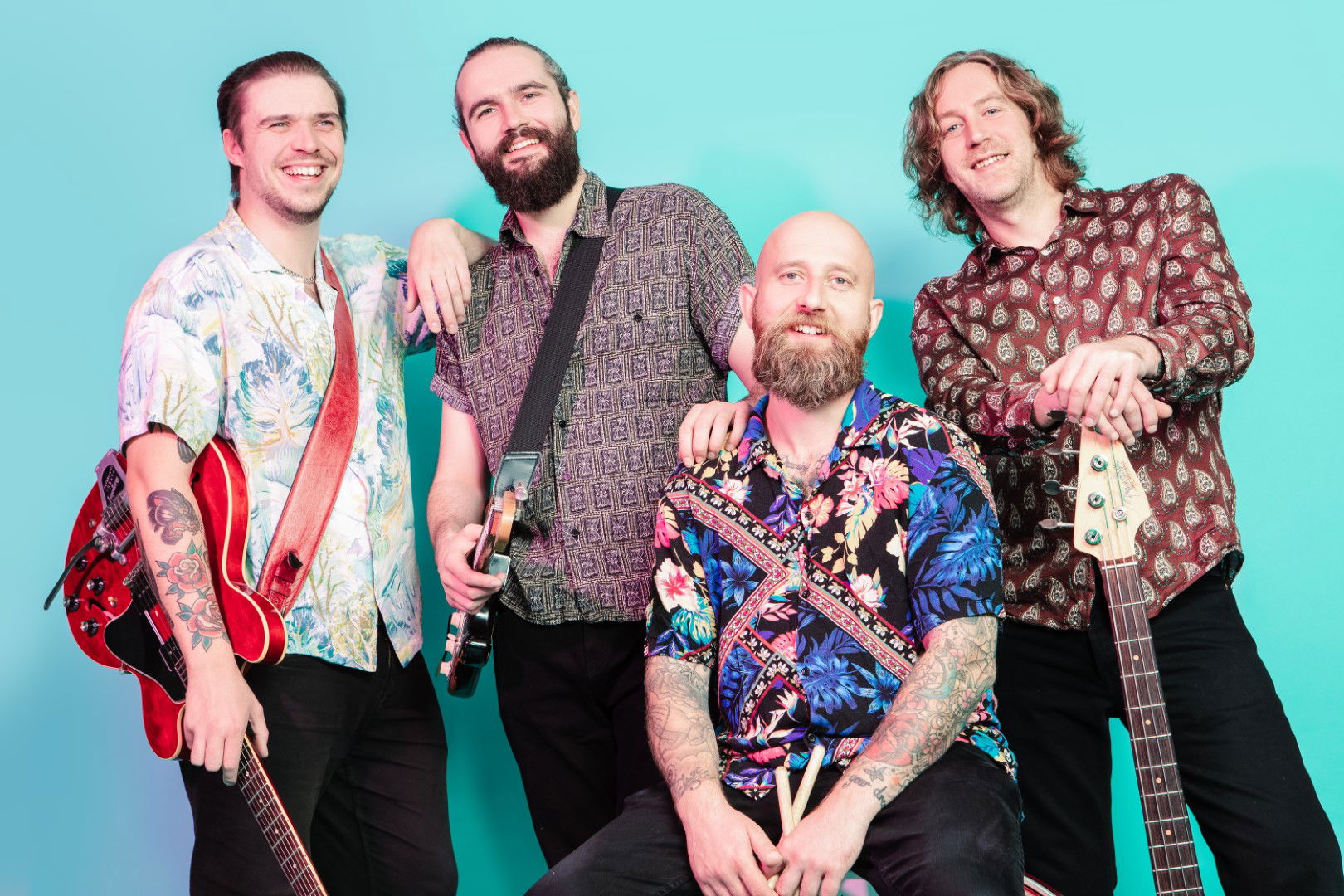 Lead Vocals and Guitar, Lead Guitar, Bass, Drums.