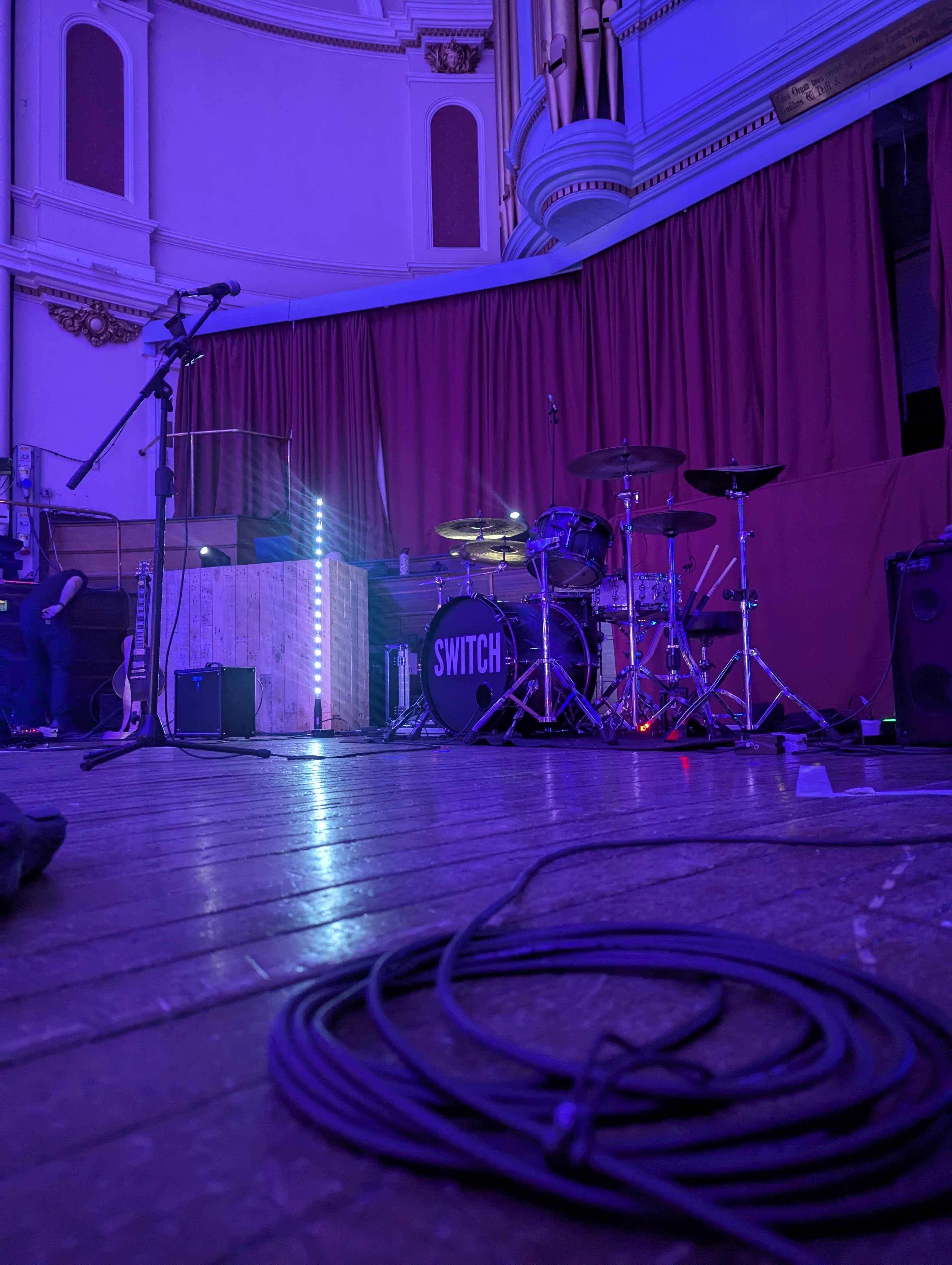If your venue has a sound limiter, don't worry! Switch can provide a small acoustic kit with soundproof mesh heads and low volume cymbals which typically sits at 80db and can be dampened lower to 70db if required. An electric kit can also be provided on request.