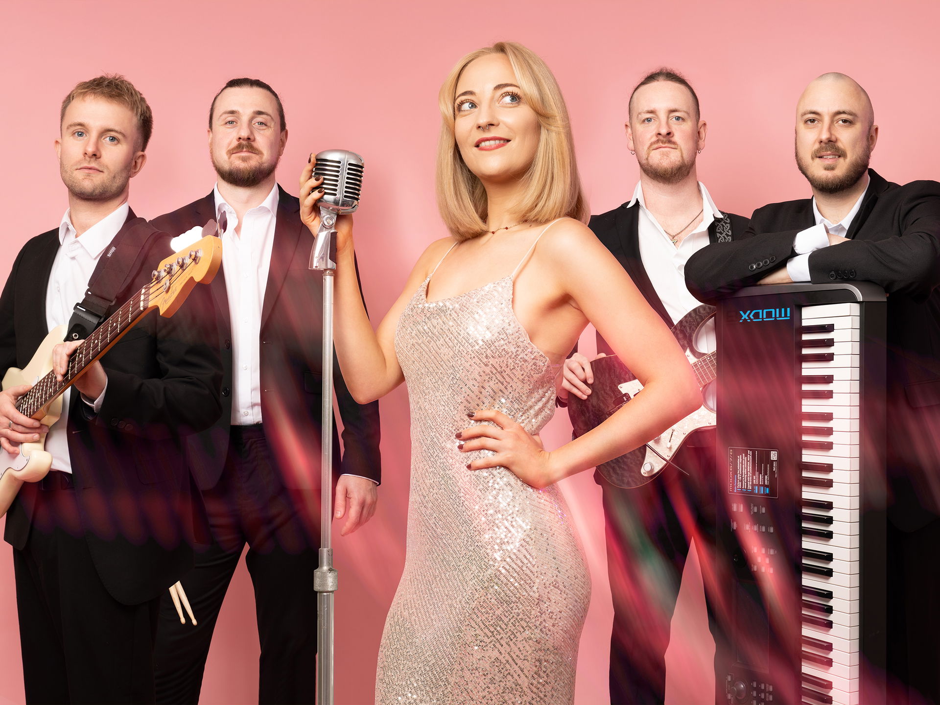 5 Piece Band: Female Vocals, Keys/Backing Vocals, Guitar/Backing Vocals, Bass/Keys, Drums.