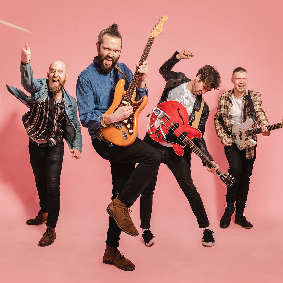 Lead Vocals and Guitar, Lead Guitar, Bass, Drums.