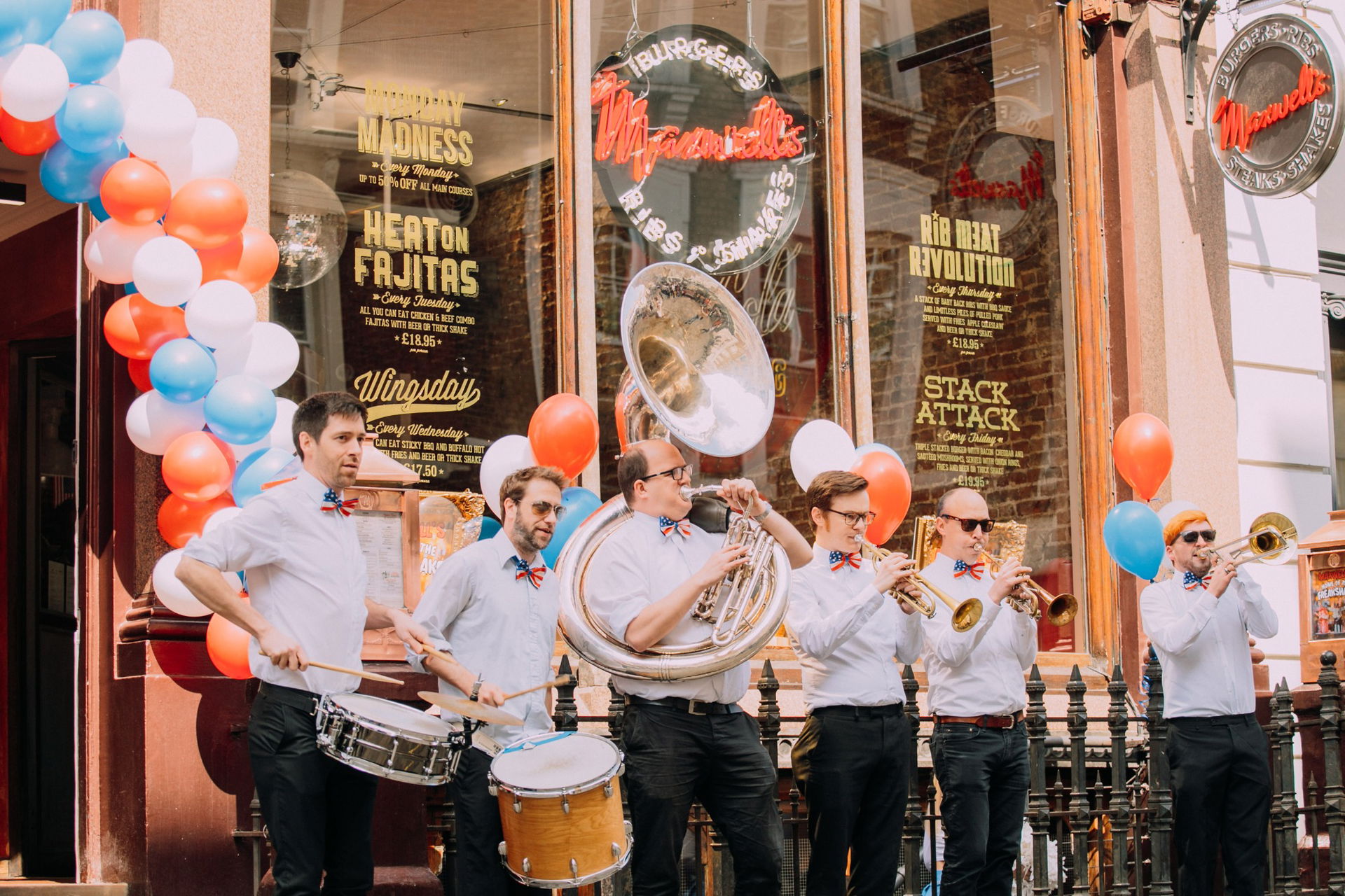 The Hot Horns are a dynamic brass band, performing funk and pop covers in a New Orleans street style. Having played at weddings, festivals & sporting events throughout the UK, their diverse repertoire covers everything from Amy Winehouse to Stevie Wonder & Pharrell Williams. Previous clients include John Lewis, Alton Towers, BMW & more.
